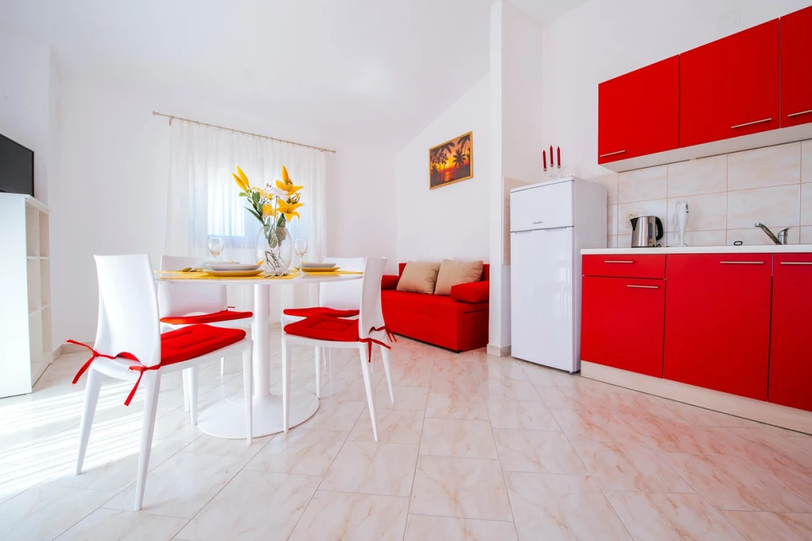 AP1 – 23 m2, ground floor, bedroom, living room, kitchen, bathroom, shower, WiFi, air conditioning, barbecue, fridge with freezer, microwave, stove, TV AP2 – 37 m2, on the 1st floor, 2 bedrooms, living room, kitchen, bathroom, shower, terrace, WiFi, barbecue, air conditioning, fridge with freezer, TV AP3 – 47m2, 2 bedrooms, living room, kitchen, bathroom, VWF, terrace, TV, barbecue, fridge, stove, microwave, etc.